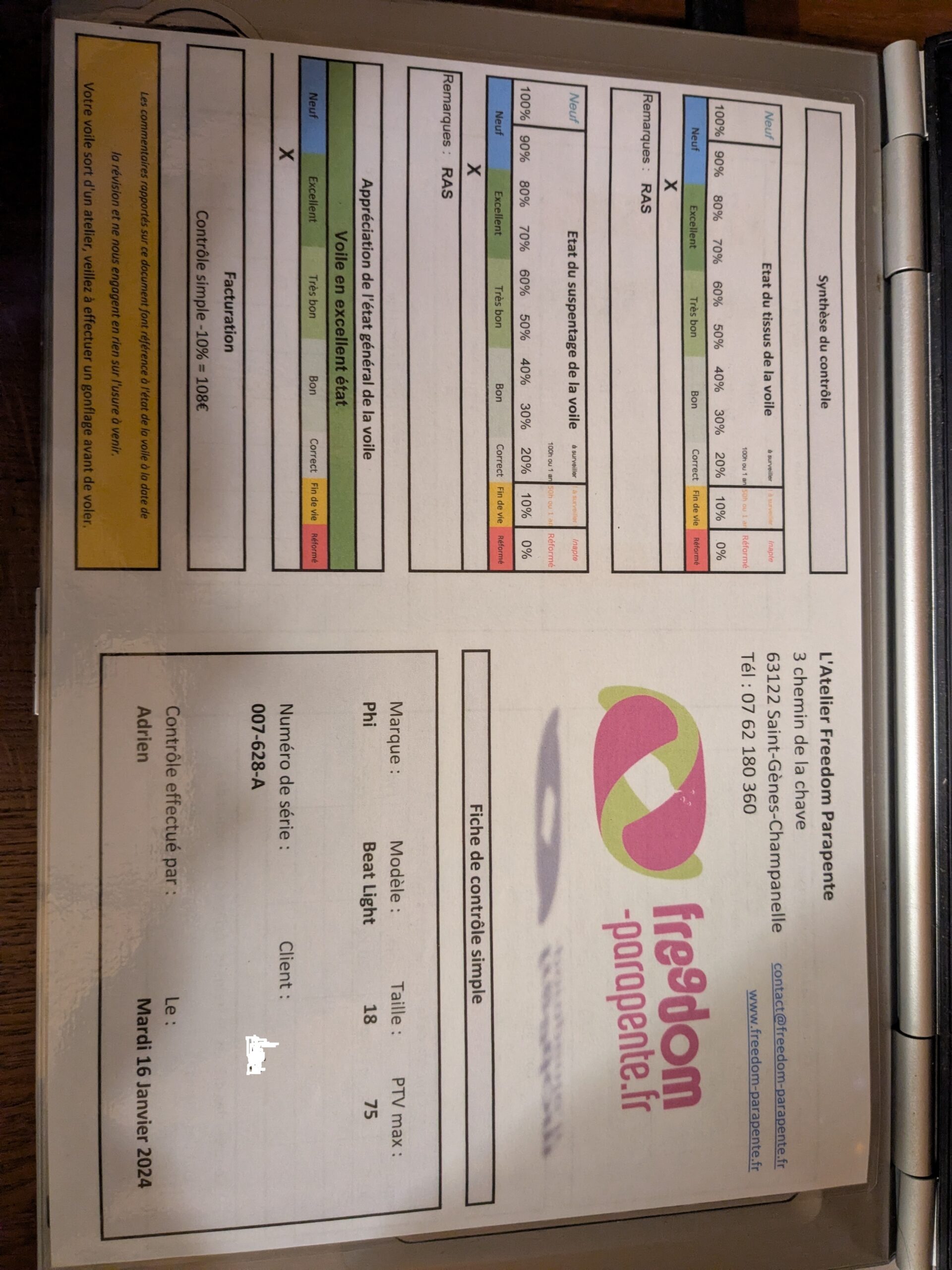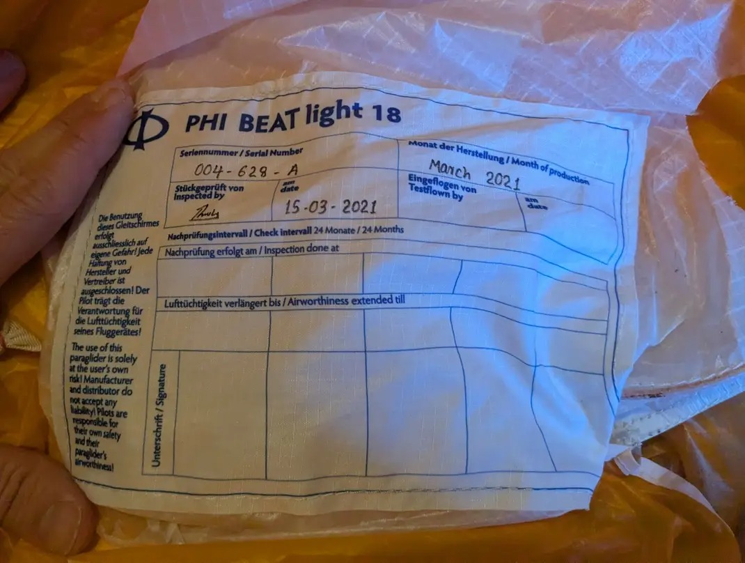 Marque : PHI, Modèle : BEAT, Homologation : EN B (Low) Taille 18 PTV 50-75, Année : 2021 bon état 12h de vol – Contrôle très bon état et prête à voler