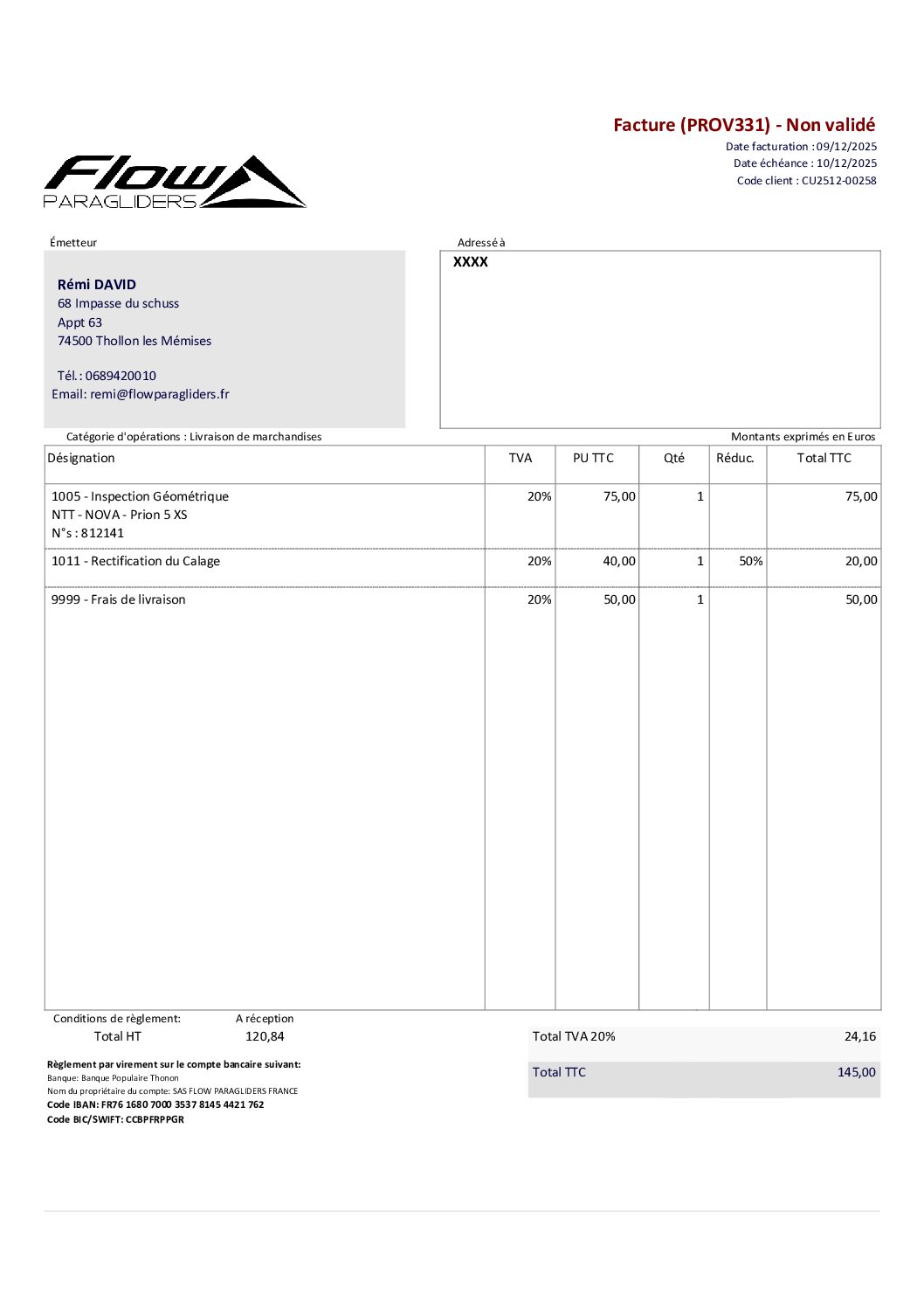 Marque : NOVA, Modèle : PRION 5 Homologation : EN A Taille XS PTV 65-85, Année : 2025 très bon état 20h de vol – Recallage effectué (facture) et prête à voler