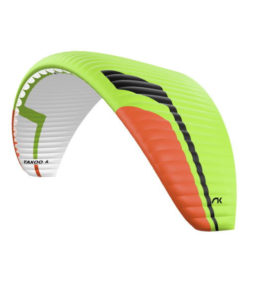 Le Takoo 6 se caractérise par un gonflage et un décollage progressifs exceptionnels, avec une prise en charge immédiate, ce qui facilite les décollages avec tous les profils de passagers. L’atterrissage a été amélioré grâce à une excellente restitution de la vitesse.