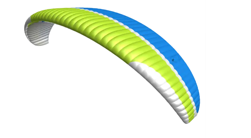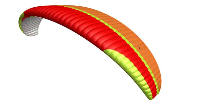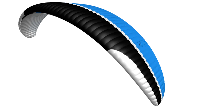 Un double façonnage 3D sur la moitié avant de la voile supérieure garantit un bord d’attaque propre, même à haute vitesse, ce qui se traduit par une amélioration significative des performances. Les lignes de tension d’admission d’air (AIT) ont un effet similaire.