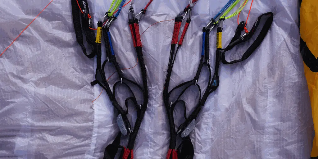 | Suspentes de freins | Edelrid 7950-100, 080, 7850-240 (Dyneema sheeted) |