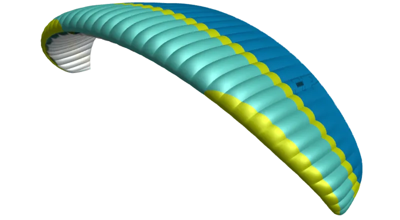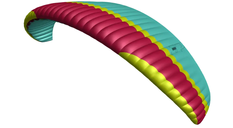 Le mélange de matériaux a été ajusté pour une durabilité encore meilleure – c’est-à-dire que le Dominico D30 est utilisé sur l’ensemble de l’extrados et une partie de l’intrados. Ce tissu est réputé pour sa grande longévité, ce qui est un atout majeur pour une aile destinée à l’école ou aux sessions de gonflage intensif. Les cloisons sont en Porcher Skytex 38HF, assurant rigidité du profil, sécurité et performance.